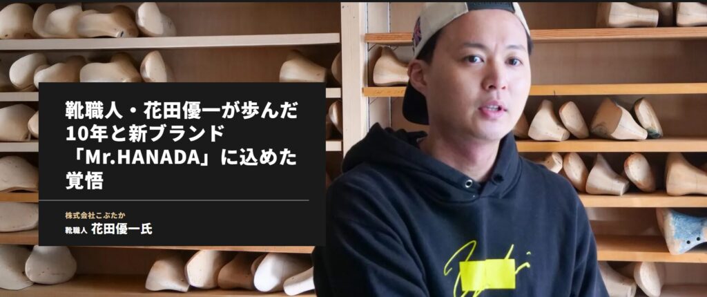 ●記事【靴職人・花田優一が歩んだ10年と新ブランド「Mr.HANADA」に込めた覚悟】:https://mabp.co.jp/interview/27517/